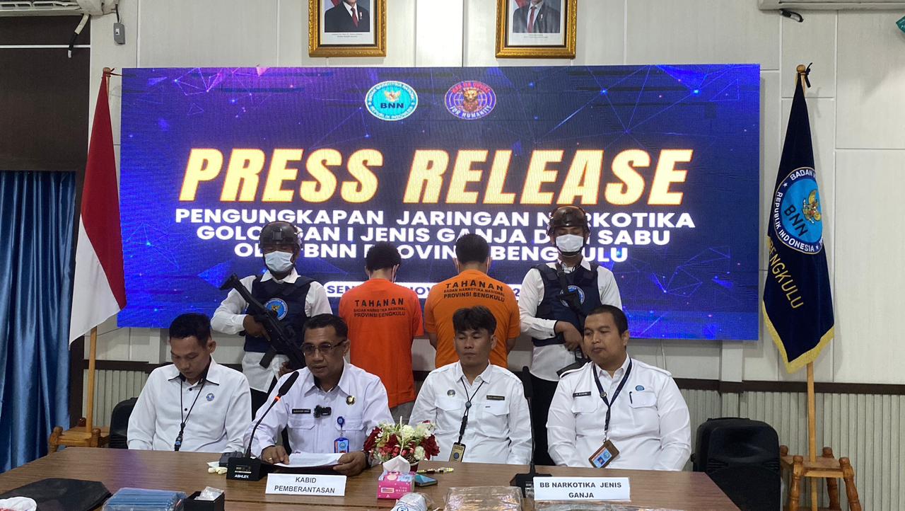 BENGKULUTERKINI.ID – Badan Narkotika Nasional Provinsi (BNNP) Bengkulu berhasil mengungkap kasus peredaran narkotika lintas provinsi dan mengamankan satu tersangka beserta barang bukti ganja seberat 5,3 Kilogram (Kg).