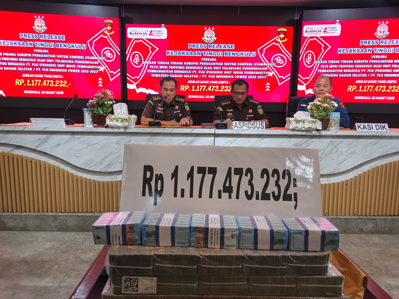 Pengembalian uang tersebut dilakukan pada 29 Februari 2026 dan diumumkan dalam press release di Kantor Kejati Bengkulu, Kamis (5/3/2026).