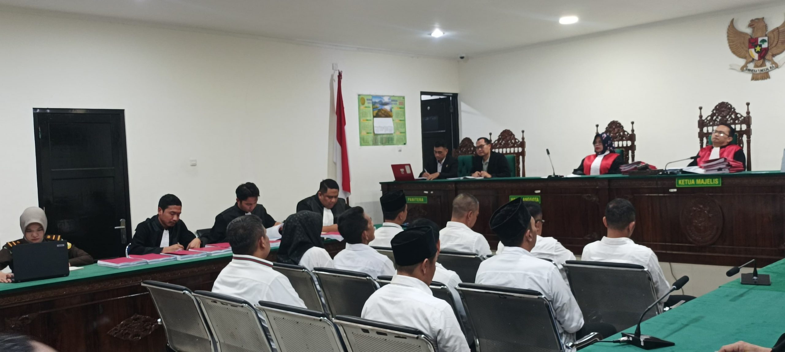 Sidang yang berlangsung pada malam hari ini menyeret mantan pimpinan Dewan, mantan anggota Dewan dan Sekwan sebagai terdakwa dengan total kerugian negara mencapai Rp 34 miliar.