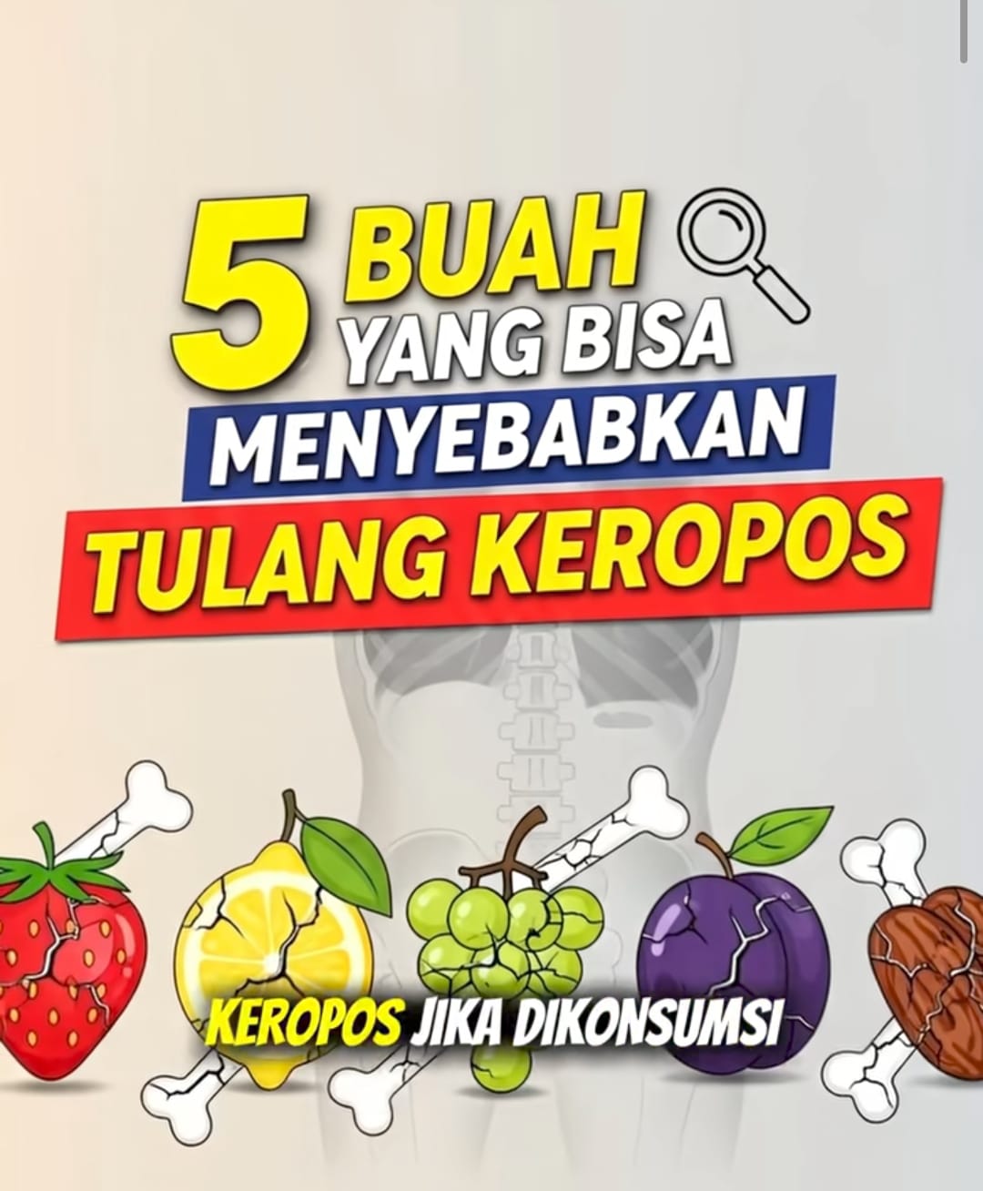 Beberapa jenis buah tertentu dapat memengaruhi kesehatan tulang, terutama jika dikonsumsi tanpa diimbangi asupan nutrisi lain seperti kalsium dan vitamin D. Berikut lima buah yang berpotensi menyebabkan tulang keropos apabila dikonsumsi secara berlebihan.