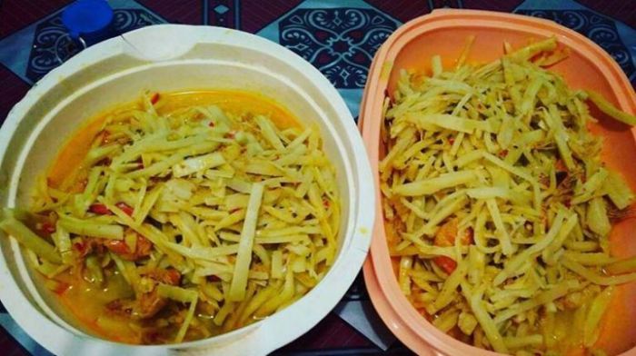 BENGKULUTERKINI.ID – Rebung Asam Undak Liling merupakan salah satu makanan tradisional khas Bengkulu yang dikenal sebagai hidangan yang mantap dan digemari oleh masyarakat setempat. Kuliner ini terbuat dari perpaduan dua bahan utama, yaitu rebung atau bambu muda dan liling yang juga dikenal sebagai keong hitam.