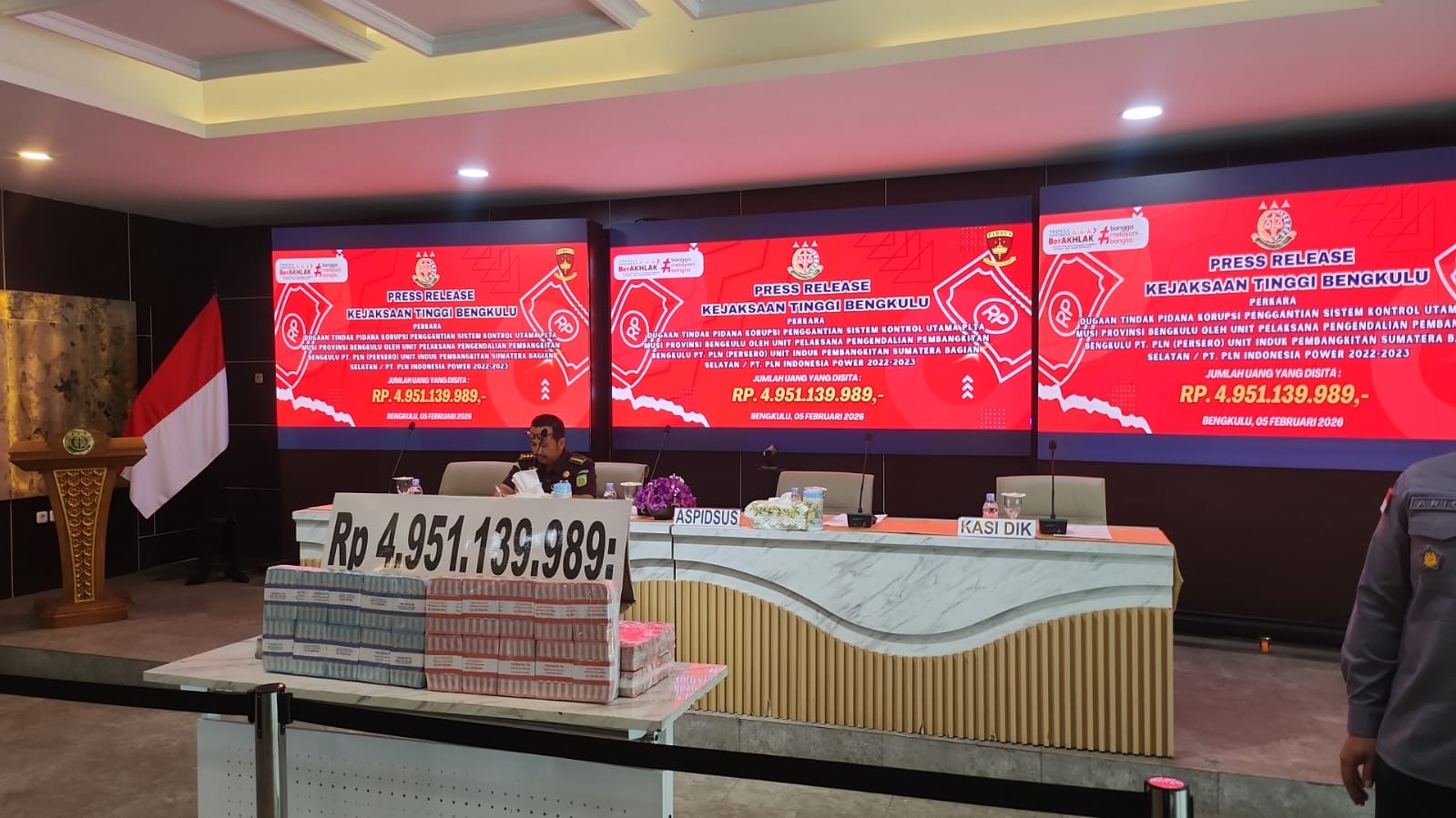 BENGKULUTERKINI.ID – Kejaksaan Tinggi (Kejati) Bengkulu menyita uang senilai Rp4,95 miliar dalam penanganan perkara dugaan tindak pidana korupsi proyek pengadaan alat Sistem Kontrol Utama (SKU) Pembangkit Listrik Tenaga Air (PLTA) Musi, Provinsi Bengkulu.