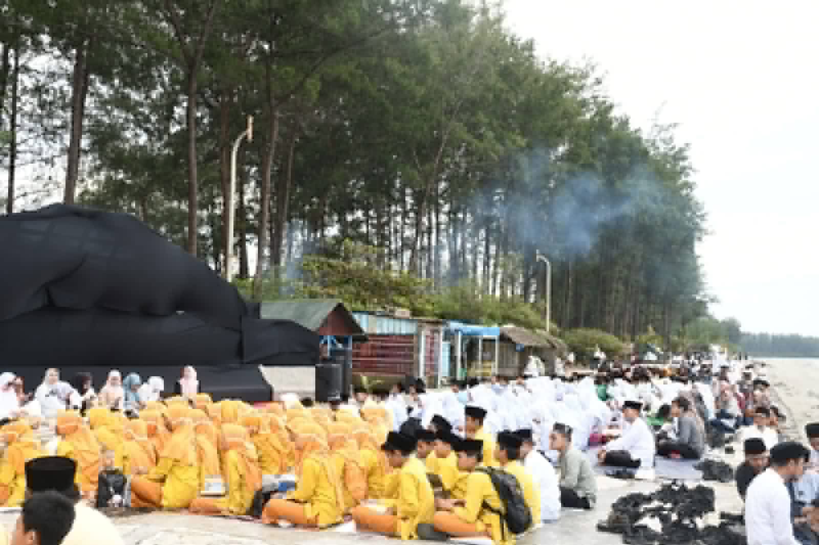 Suasana Pantai Panjang yang biasanya menjadi titik kumpul pagi hari, kini bergema dengan lantunan ayat suci. Para peserta duduk berkelompok dengan latar belakang panorama laut yang tenang, menciptakan harmoni antara alam dan spiritualitas.