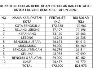 Sebagai catatan, pada tahun 2025 BPH Migas hanya menyetujui sekitar 70 persen dari total usulan Pemprov Bengkulu. Alokasinya yakni 109.188 KL untuk Bio Solar dan 253.357 KL untuk Pertalite.